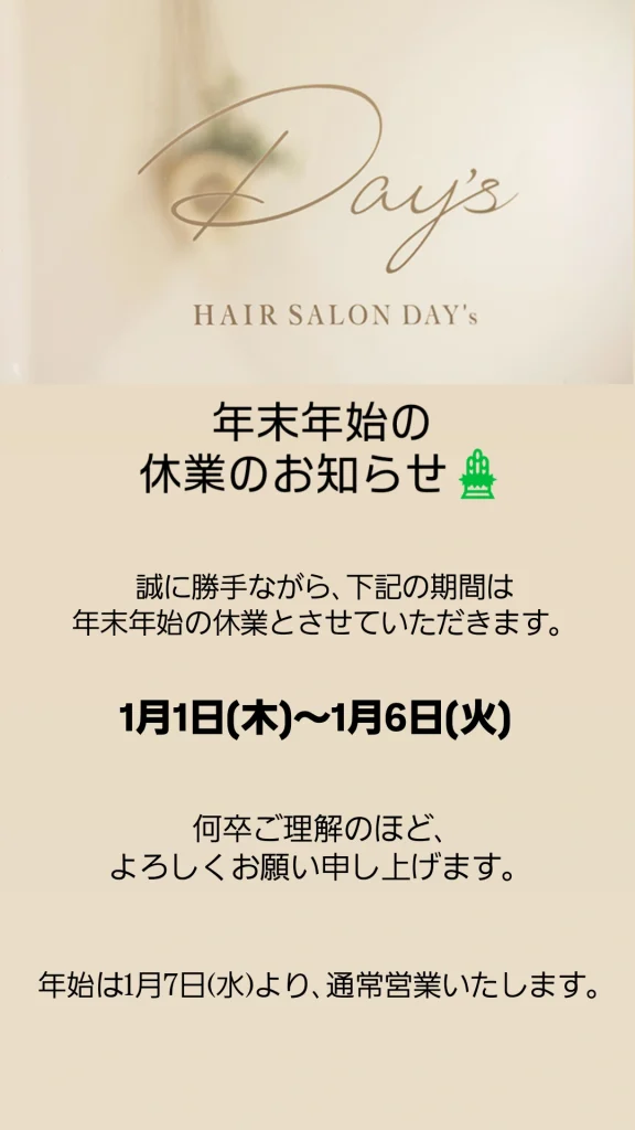 春日市美容室hairsalonDay’s年末年始のお知らせ